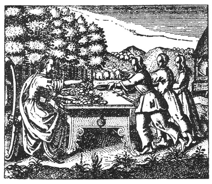 The fourth gives from her treasure again the glass that thins.